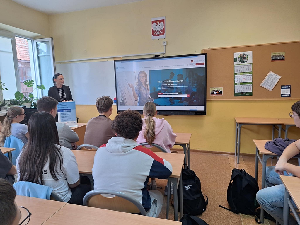 Na to pytanie i wiele innych odpowiadała 19 września 2025r. Pani Katarzyna Kijak z Agencji Rozwoju Regionalnego w Koninie, Punkt Informacyjny Funduszy Europejskich. W spotkaniu brali udział uczniowie klasy 5 I - technik informatyk oraz 2 LE - technik ekonomista. Ciekawym źródłem wiedzy, prezentowanym w czasie wykładu ,jest Baza Usług Rozwojowych. Każdy może wyszukać kurs dla siebie i dodatkowo uzyskać nawet 90% refundacji. Warto wiedzieć!